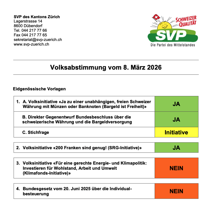 Schweizerische Volkspartei (SVP) Rüti ZH